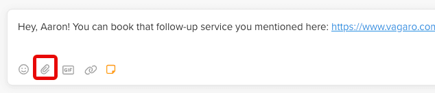 When messaging a client using Connect by Vagaro, you’ll click this link icon beside the chat box: