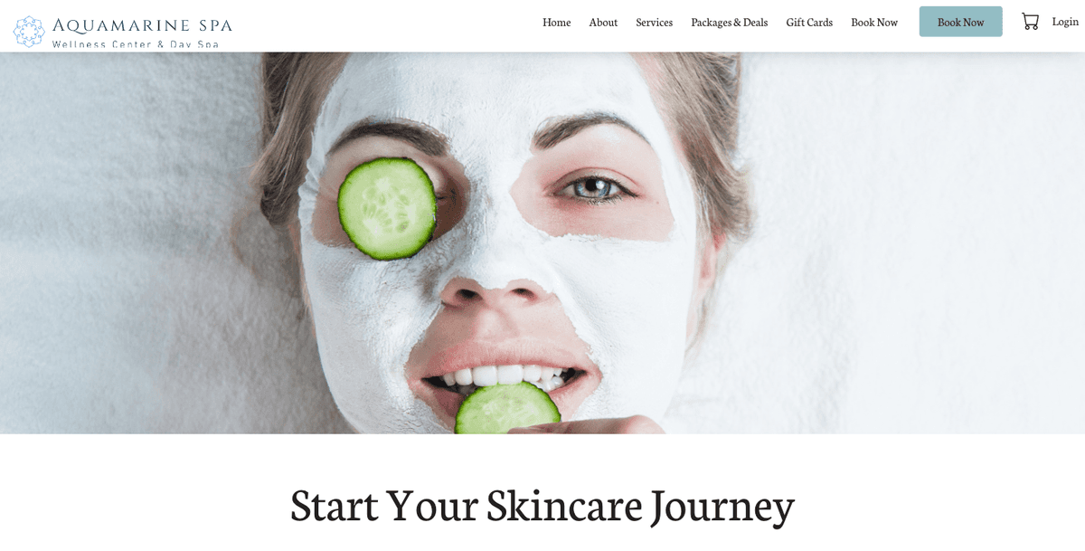 This MySite uses a calming color palette of white and soft blues, combined with ample negative space, which helps create a relaxing mood. Aquamarine also used an abundant amount of imagery to keep visitors visually engaged while perusing their site. Finally, their service categories are clearly laid out with an image accompanying each one, facilitating easy navigation and understanding of what they have to offer.