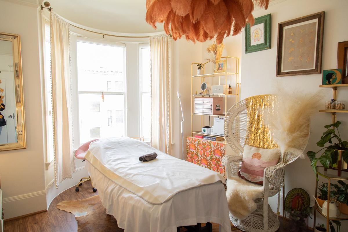 A single, cohesive color palette gives this studio a calm, meditative vibe. The uniformity emphasizes relaxation and lets the service itself shine.