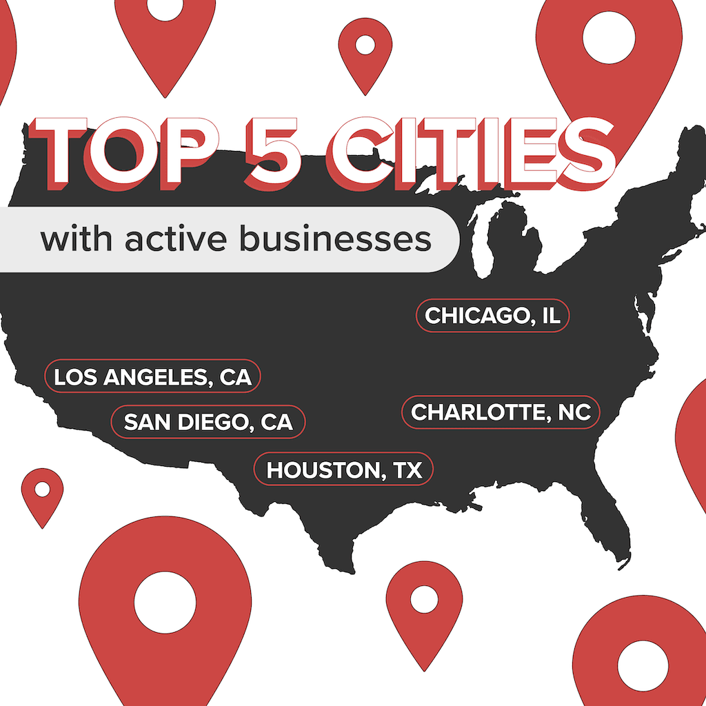 Here are your top 5 cities with the most active businesses on Vagaro: