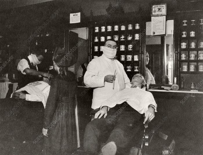 Just over 100 years ago, the Spanish Flu event of 1918-1920 was the deadliest pandemic ever recorded in history. The pandemic affected over 25% of the US population, with more documented deaths worldwide than in World War I. People covered their faces, wearing masks to slow transmission of the disease. State and local governments banned public gatherings, and enacted social distancing measures by shutting down spaces like churches, schools, and movie theatres. Many close-contact businesses, such as barbershops, even moved their services outside to reduce the spread of infection.