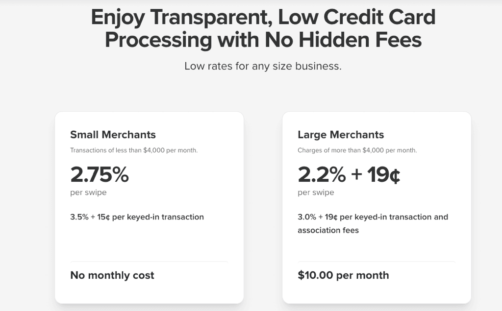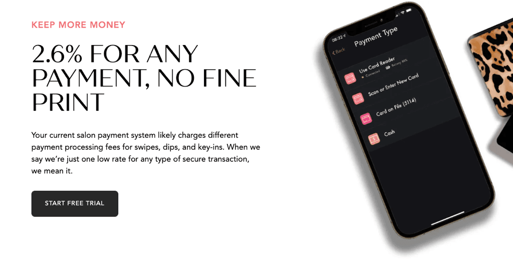 Vagaro: Vagaro provides customers with a free Contactless Card Reader (with Merchant Services), which carries flexible payment processing rates geared toward a business’s size, with the lowest being 2.2% +19¢, geared toward high-volume merchants.