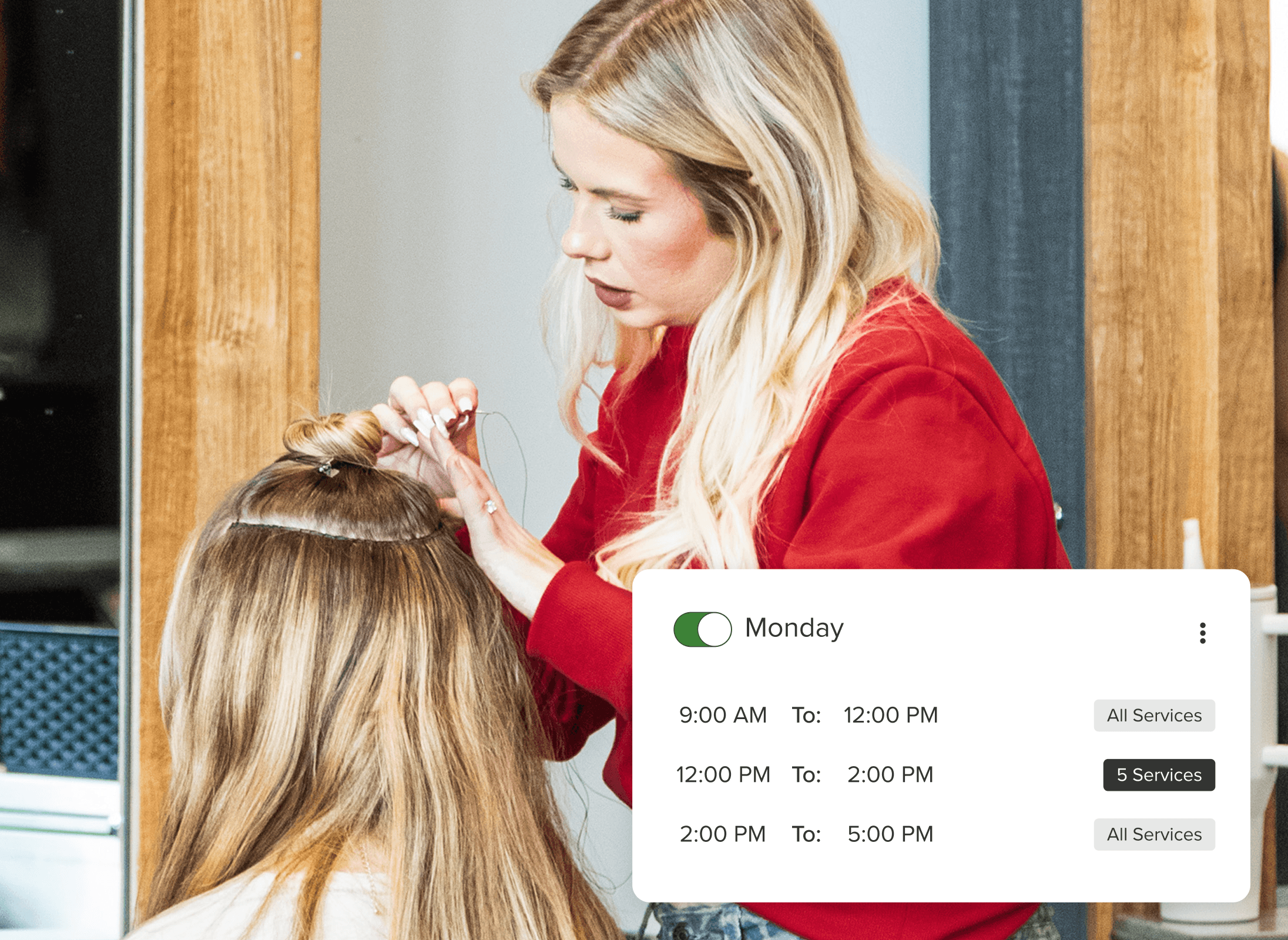 Customise your availability by service, day, or time—ensuring clients only book what you want, when you want.