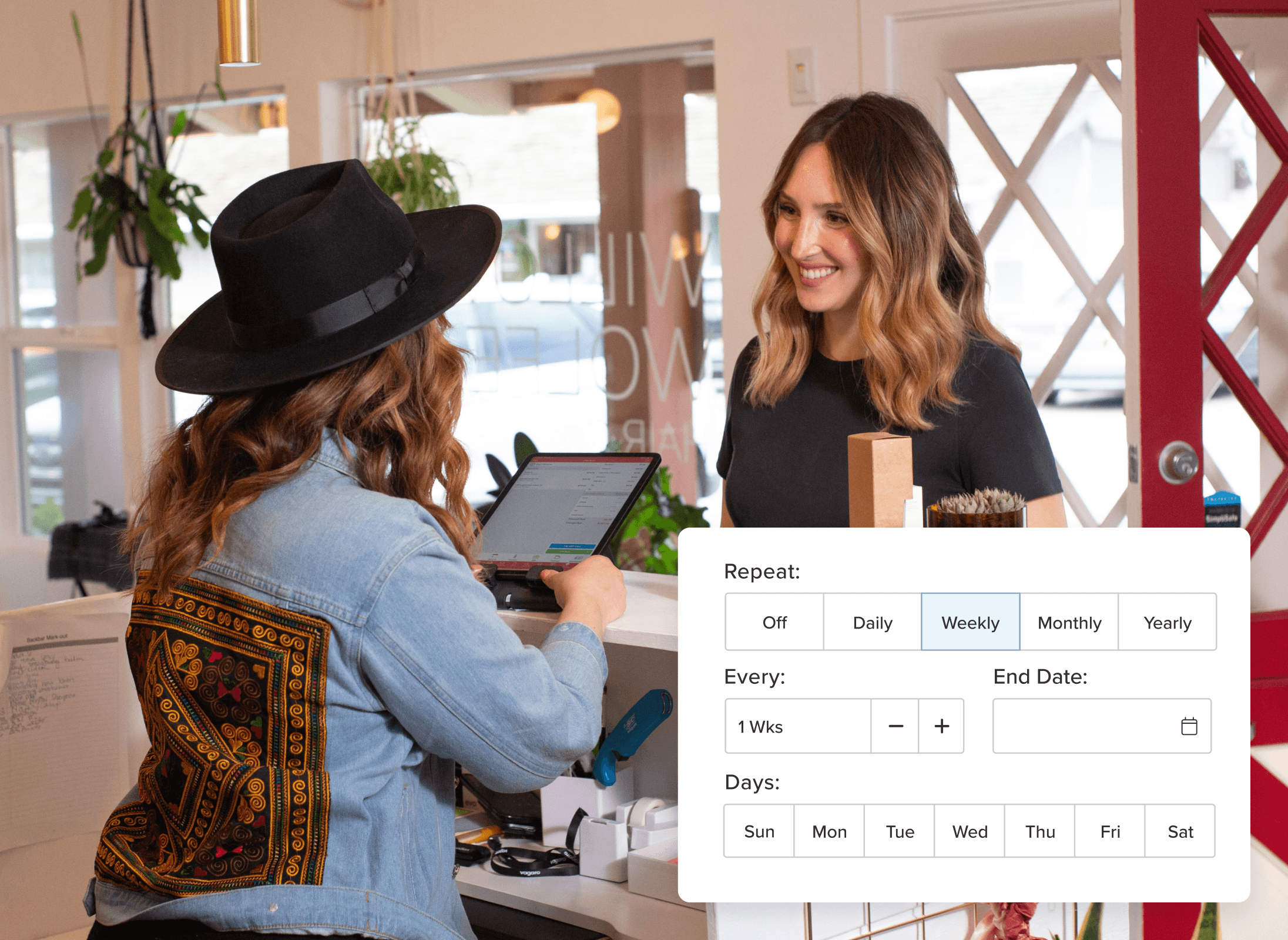 Set up recurring appointments with custom start and end dates, and keep your regular clients coming back automatically.