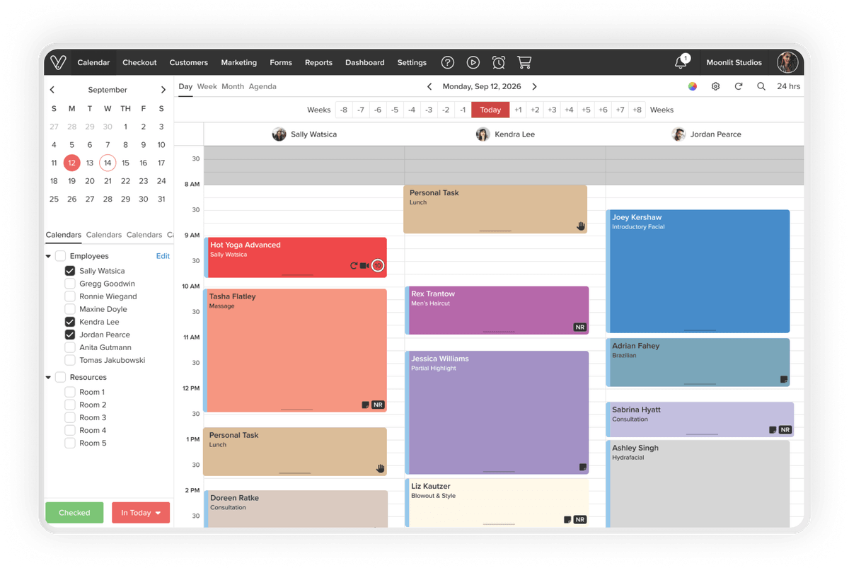 Vagaro’s calendar software is a powerful scheduling tool that helps beauty, wellness, and fitness professionals manage appointments, staff schedules, and client bookings in one place. You can view, edit, and organize your daily or weekly calendar from any device, making it easy to stay on top of your business, even on the go.