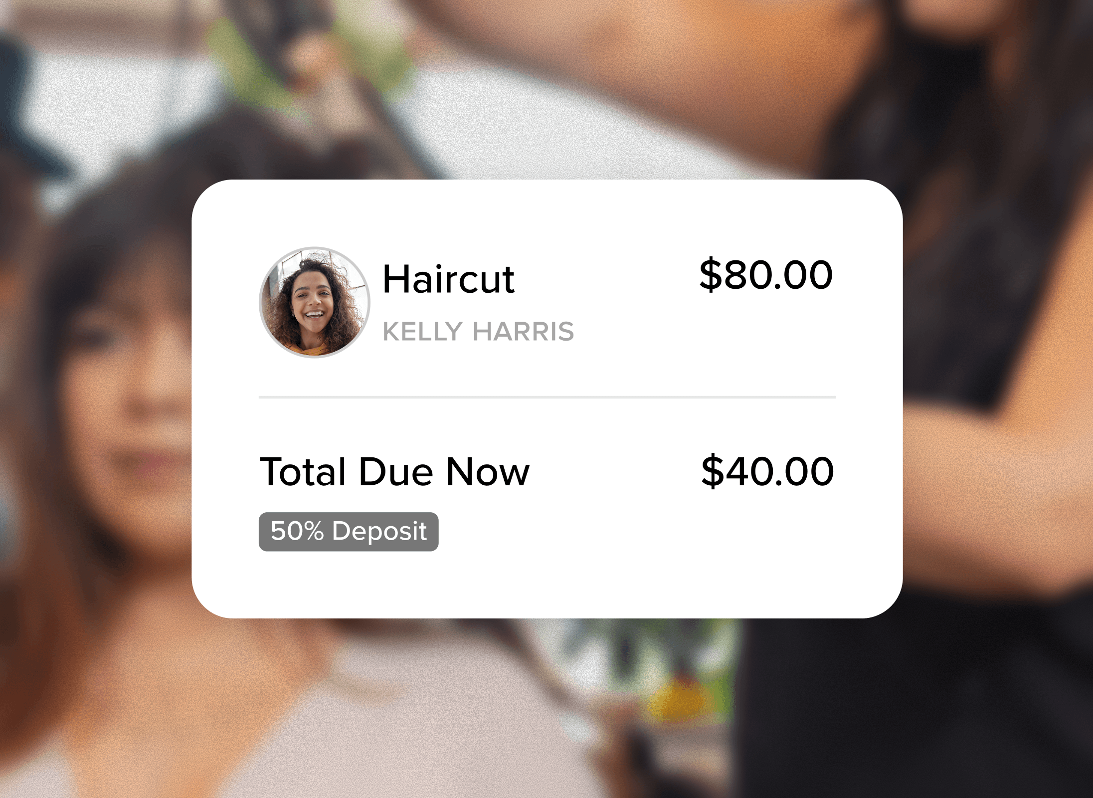 Secure bookings and reduce no-shows by accepting upfront deposits, storing client cards on file, and enabling fast checkouts with recurring payments & invoicing.