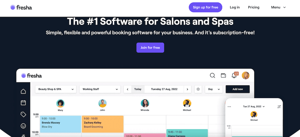 Fresha is a subscription-free salon and spa management platform with robust online bookings capabilities, designed to cater to beauty and wellness businesses looking for an intuitive, cost-effective way to manage bookings, inventory, and client interactions.