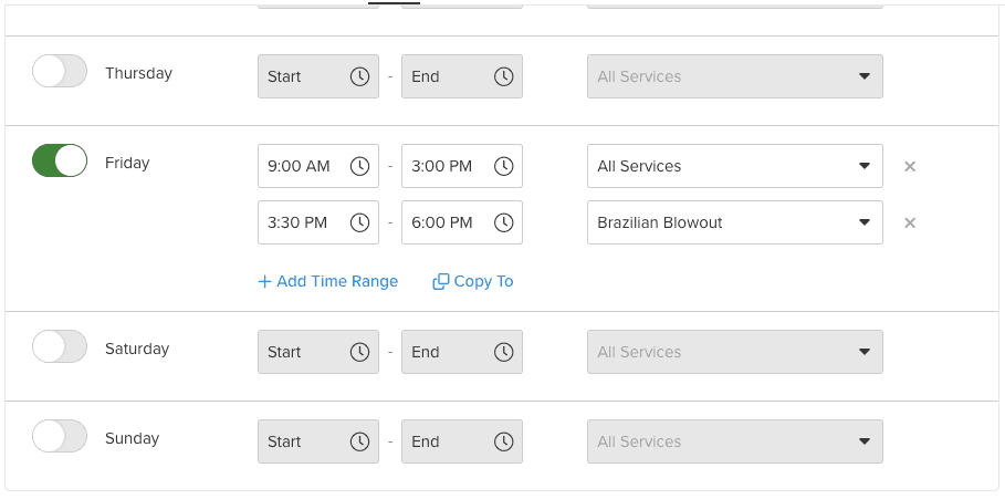 The beauty and hair industries are constantly evolving through new trends & technology. Custom service hours allow you to remain flexible in the face of peak seasons, rush hours, or downtimes.1
