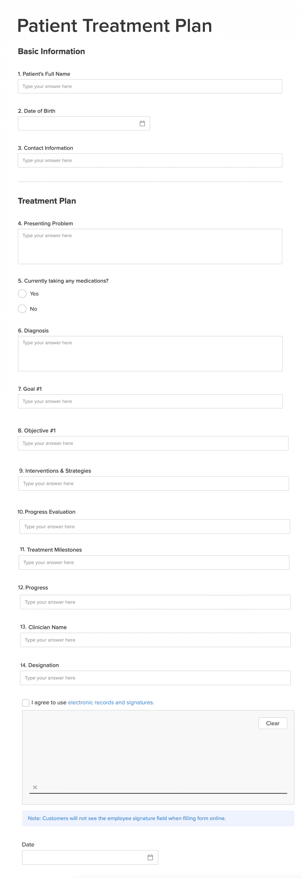 The counseling treatment plan example below was made using Vagaro’s Forms feature: