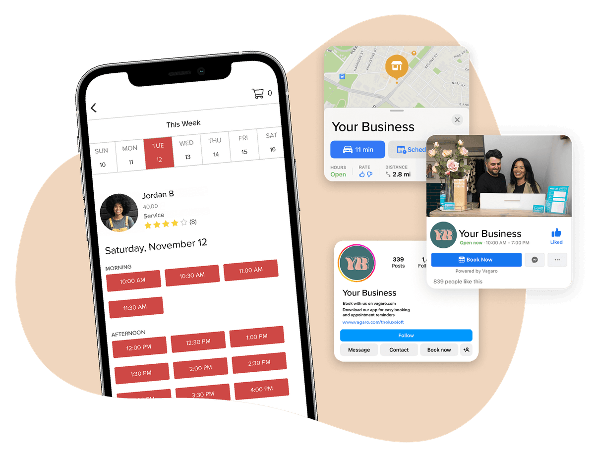 What’s a widget, anyway? Don’t worry about the techy details—all you need to know is that Vagaro lets clients book appointments straight from Instagram, Facebook, Apple Maps, and The Vagaro Marketplace. That means your business is everywhere your regulars and potential clients are, helping you maximize both bookings and revenue.