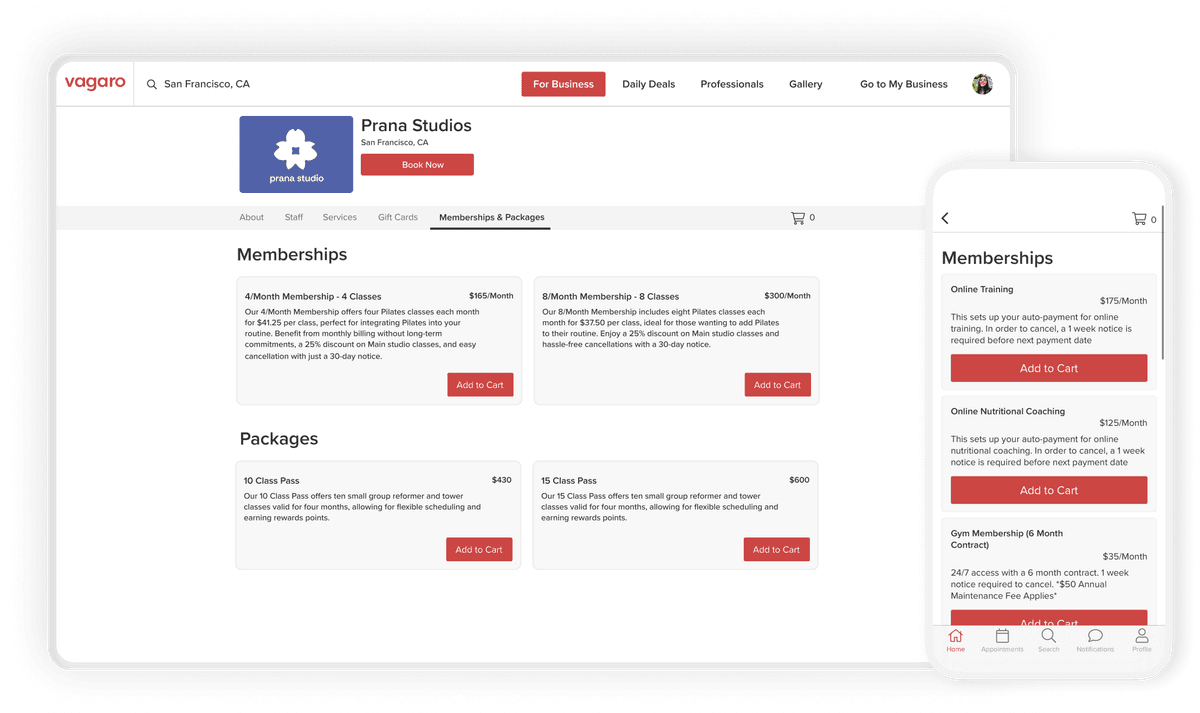Memberships, Packages & Gift Certificates