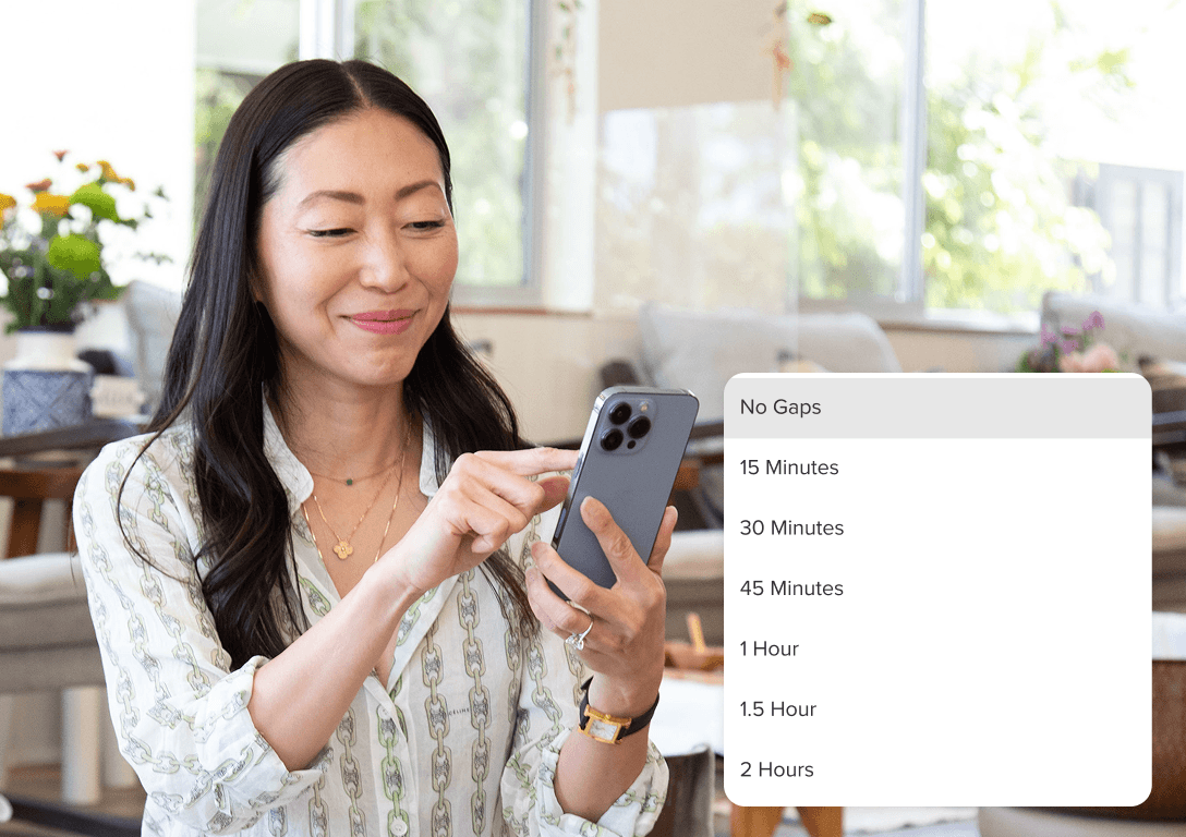 Automatically group available time slots around existing bookings. This helps you stay optimized, see more clients, and maximize your working hours.
