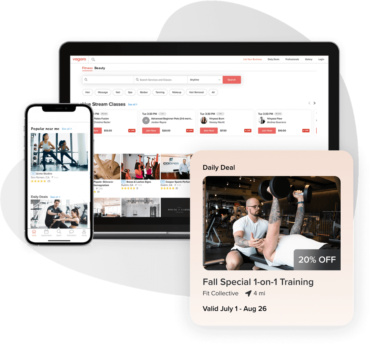 An online marketplace is a platform where customers can discover, compare, and book services & classes from local professionals. Vagaro’s Marketplace helps businesses get found by new clients searching for beauty, wellness, and fitness services in their area.