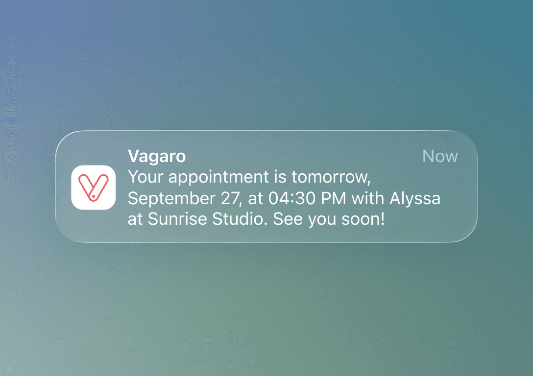 Reduce no-shows with automated email and SMS reminders so clients always show up on time.