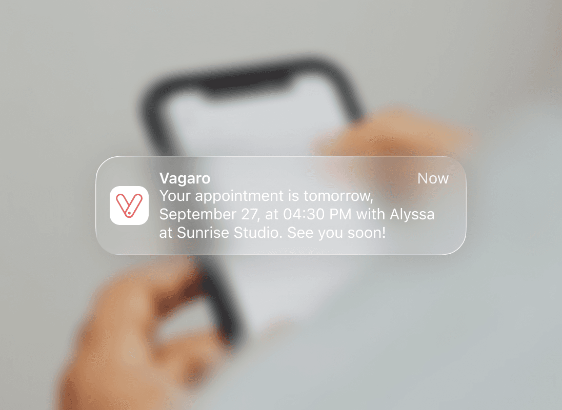 Customers receive instant push notifications inside the Vagaro app for added convenience.