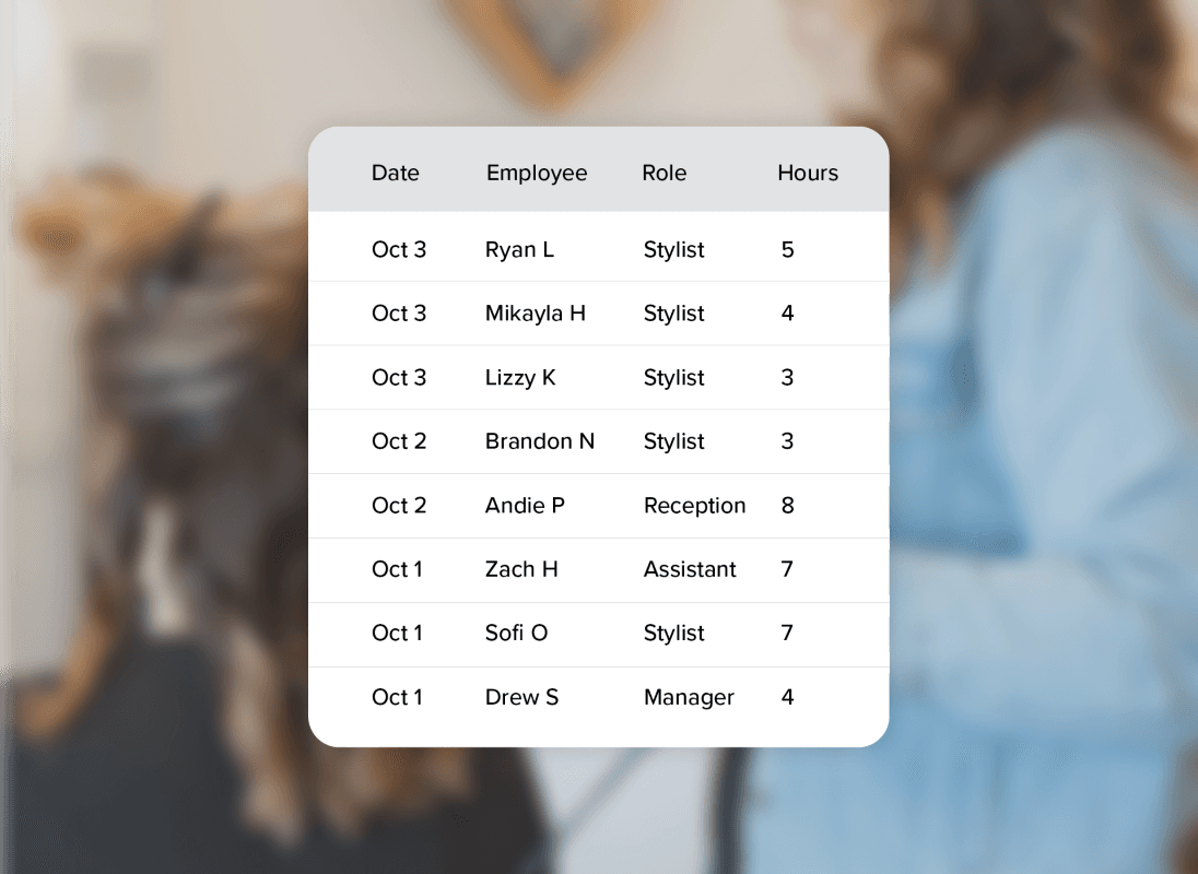 Set flexible commission structures and pay rates based on roles or services—so everyone gets paid exactly how they should.